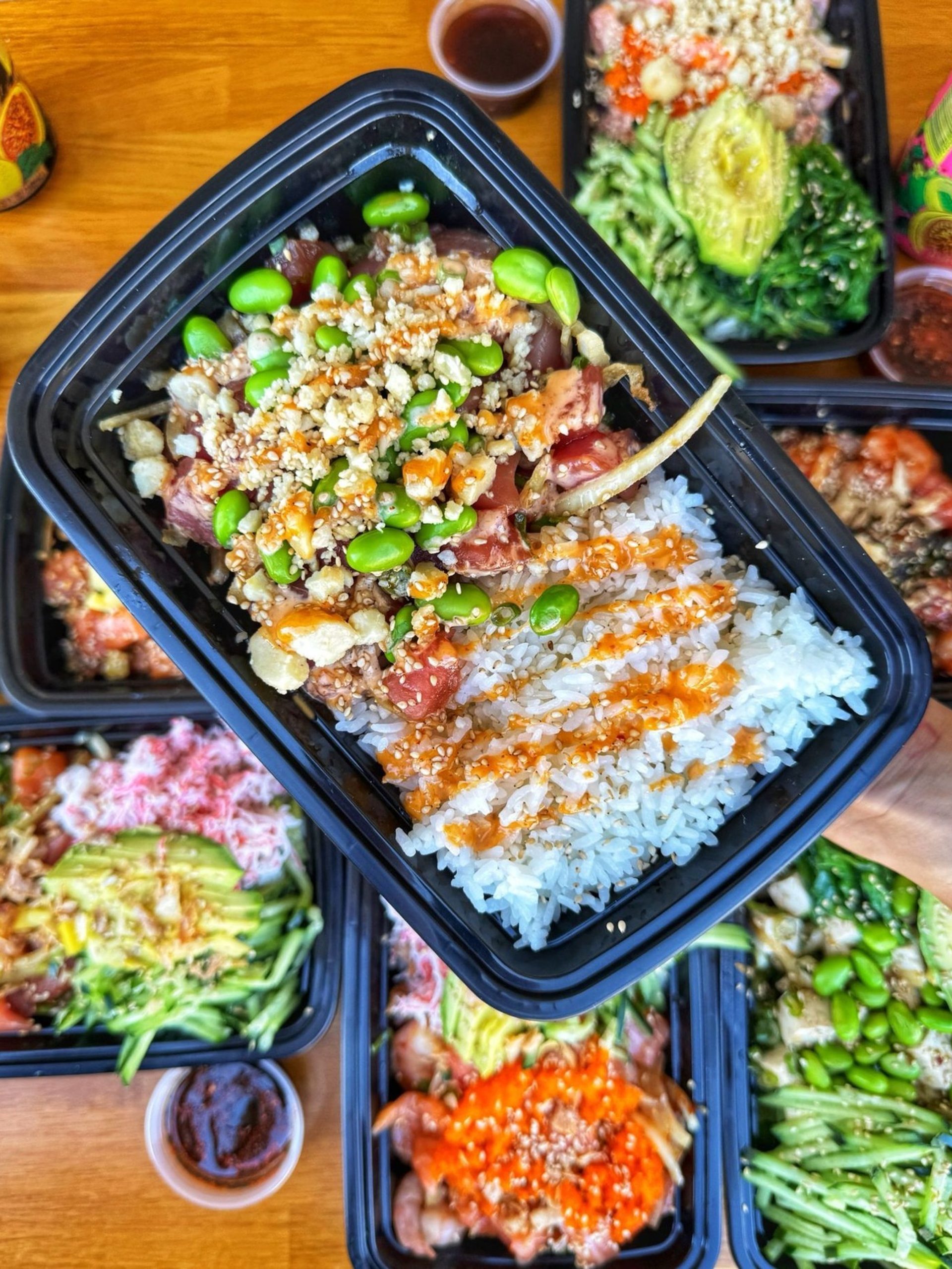 We offer pickup and delivery to Sandpointe! Get poke delivered in 45 mins.